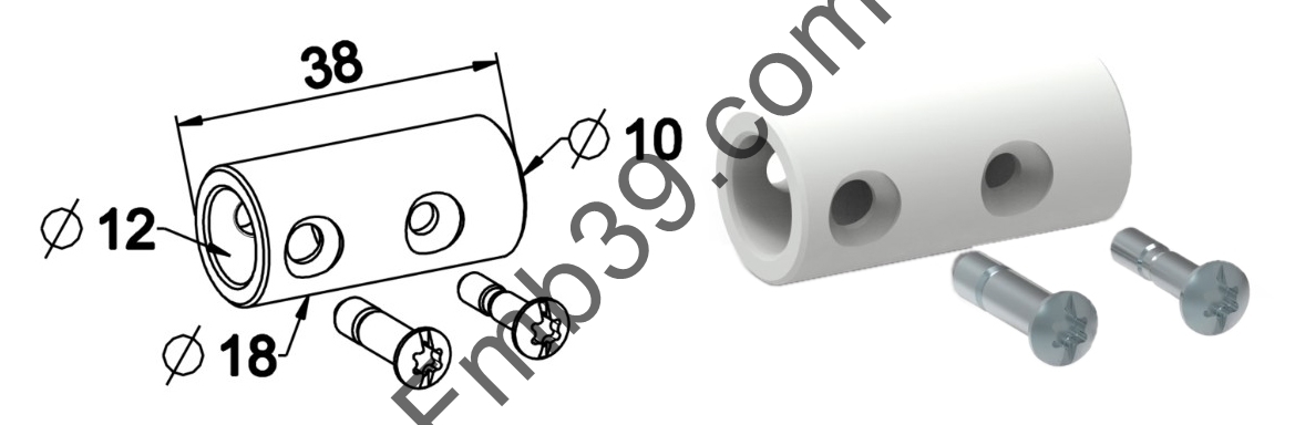 Manchon d'adaptation Øint. 12 mm x Ø10 mm + 2 vis - blanc